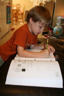 Here is Everett working on some math. He also catches on very quickly and is already almost finished with the math book that I thought he would be using all year. He only has three lessons left in this one, so I’ll probably be ordering his first grade book in a few days.