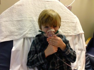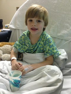 | Everett had a minor procedure done while we were in town, and here he is all smiles afterwards |