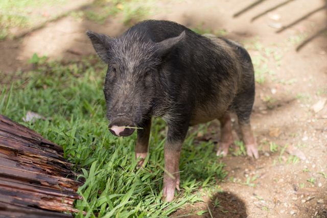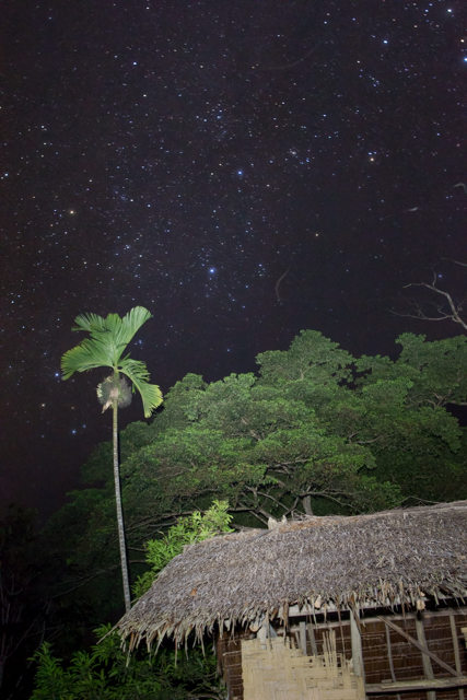 Our bush house was a typical nambis (“coastal”) style house situated on stilts about ten feet off the ground, with a large open area underneath. The houses are built this way in an attempt to make the house cooler, to keep animals from wandering in, and to stay dry during the rainy season. Dogs, cats, chickens, and pigs roamed freely throughout the area surrounding and directly beneath our house. Huge bilak bokis (“fruit bats”) feasted on the fruit trees right outside our windows every night, and enormous spiders both inside and outside did their best to rid the house of insects. Unfortunately they were unsuccessful. Centipedes capable of burning human skin with only a touch, poisonous millipedes, huge roaches, and a variety of insects I’d never before encountered sauntered through the house according to their own whim.
