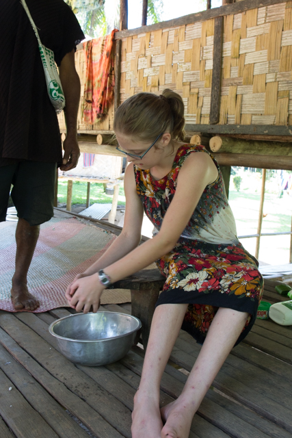 Our first day in the village was a bit overwhelming, as the entire village came to welcome us, helped us unload all of our supplies, then spent much of the day hanging around to watch what we would do. We spent the day getting to know our was femili (“watch family”; the family that was responsible for us during our time in the village), setting up our house, and learning where the bathing and clothes washing areas were.