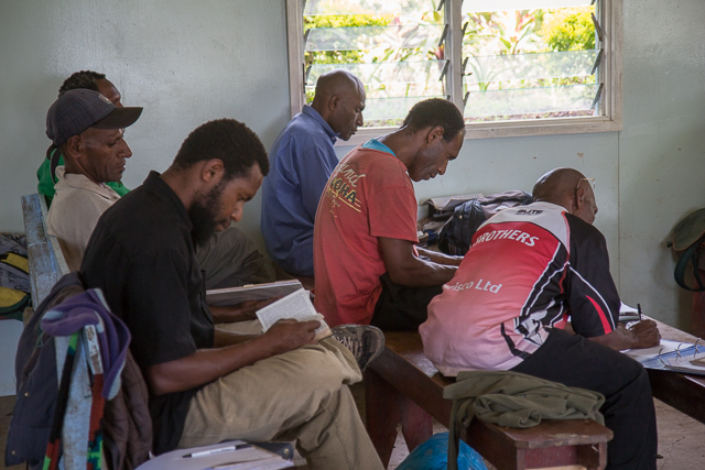 This week was a good opportunity for these men to practice teaching what they’ve learned so far. A few times a year, all of the New Life pastors meet for a week of training on how to study and preach various books of the Bible. In the last training, which took place in June, they studied the book of Titus, learning how important it is to rightly divide the word of God and to faithfully teach sound doctrine. In order to go further with this concept, this week’s class, which was attended by more than twenty pastors from all over Goroka, focused on doctrine. Many topics were taught, including the attributes of God, the person and work of Jesus, the definition and purpose of the church, and a Christian understanding of the Sabbath. Two of the men that Jeremy has been teaching for the past three weeks were able to participate in teaching some of the sessions, sharing with the other pastors what they have learned about God from the Bible during their studies.