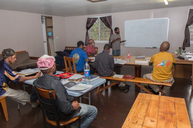 | This is the group of pastors that Jeremy is training each week. In this photo, Waty is teaching the concepts that he learned from Jeremy last term to the new students. |