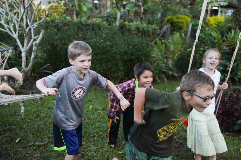 | Our friends from Holland, the Pauw family, invited a whole group of our language school classmates to their house for a party and we all had a blast! It was great to see everyone again. Here, the kids are catching up with each other while they enjoy some yummy food. |