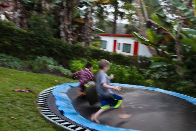 | All the way down the hill and onto the trampoline. They did this for hours. |