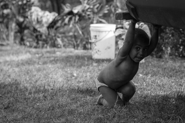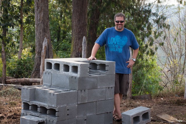 | Jeremy, Everett, and Abel work on leveling the ground beside our house |