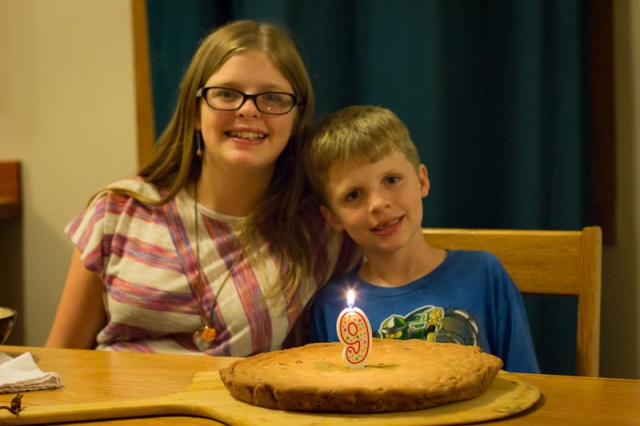 | Jeremy’s working on Everett’s birthday present: a box drum. He loved it! |