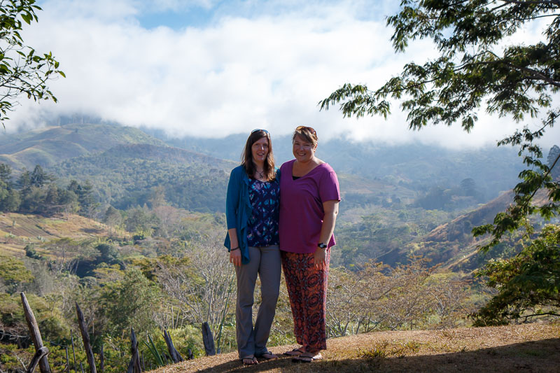 | April and Kandy with a spectacular view of the cloud covered mountains in the background. That’s our back yard! |
