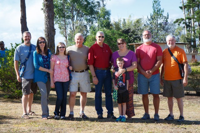 | Richard convinced us that we needed a photo of everyone pointing at the sun. Some inside thing from a previous mission trip? |